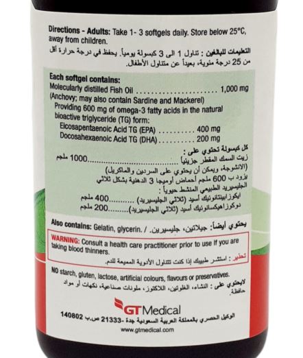 مجموع الاحماض الدهنية في الكبسولة : 600