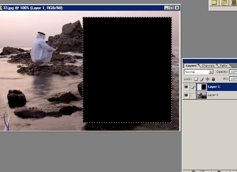 3/ الشغل الحين على اللير الجديد باداة الدلو عبي المستطيل ويصبح عندك بهذا الشكل