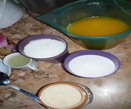 2 كوب عصير برتقال .. 2 كوب سكر او عسل نحل التحلية ( اختياري ) .. 6 ملاعق كبيرة جيلاتين ..