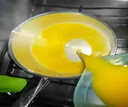 يقسم العصير الي نصفين ، نصف الأول يوضع في إناء فوق النار حتي يغلي