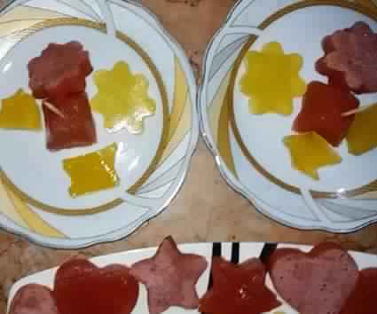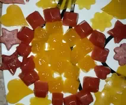 هكذا وترص قطع جيلي البرتقال والفراولة وتقدم مثلجة او غير مثلجة بعد التجميد .. هكذا