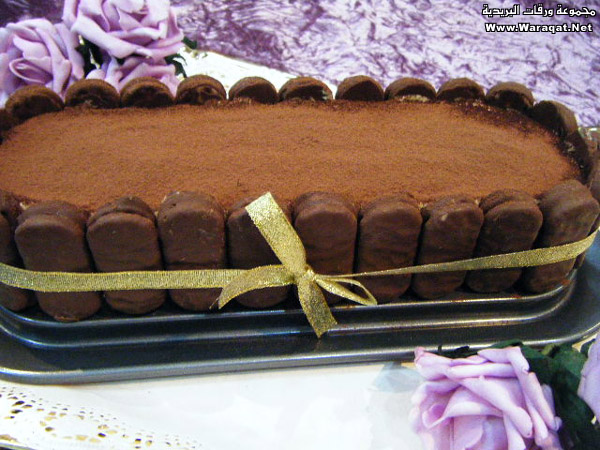 ثم طبقتين بسكوت بعد تغميسها في الحليب ونكرر الطبقات وتكون آخر طبقة من خليط الكريمة