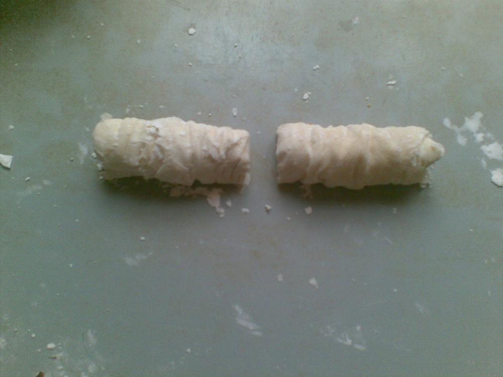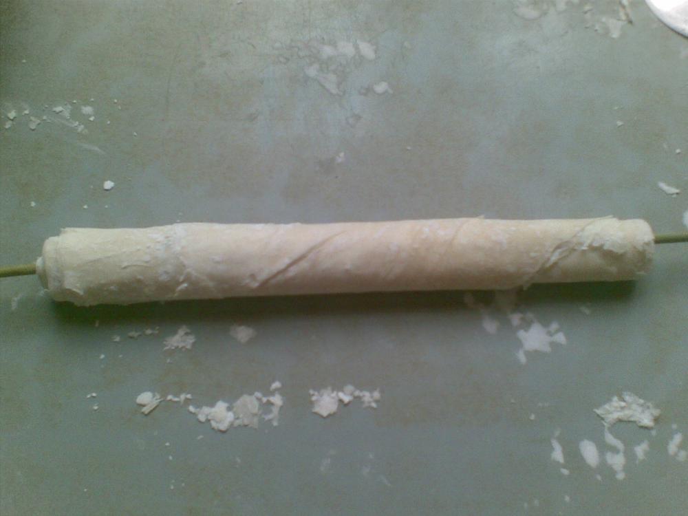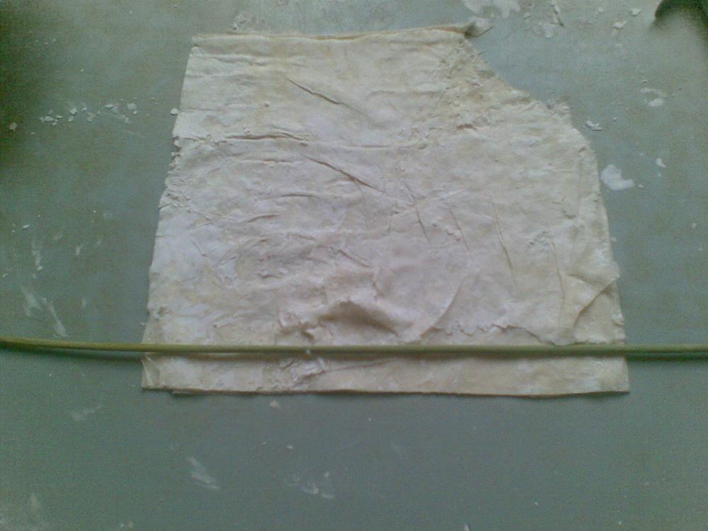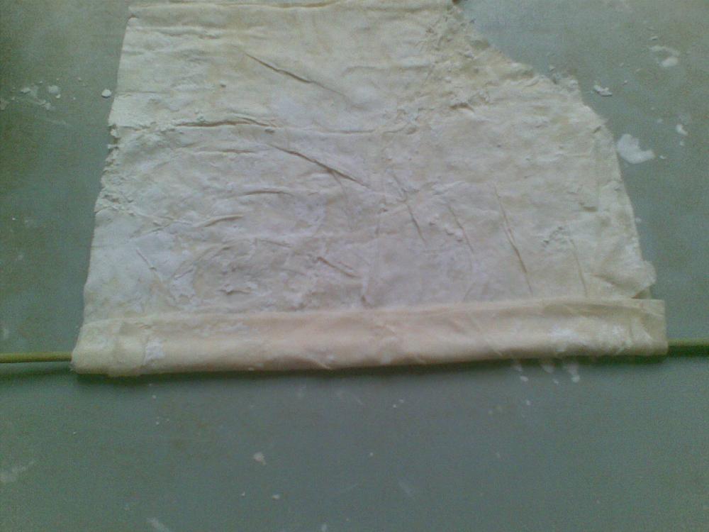 شايفين كيف الطبقات رقيقة و غير ملتصقة من النشاء الي رشيت لما فردت العجين