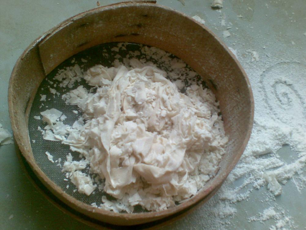 تصير عندنا 12 طبقة من العجين و بينهم النشاء