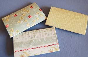 وبعد أن تجف الورقة ممكن لفها وربطها بشريط ساتان وإدخالها داخل العلبة
