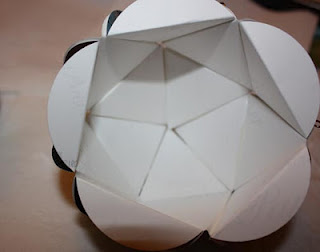 نواااااااصل طريقة العمل نقص 20 دائرة بنفس الحجم نثني كل دائرة على حسب شكل مثلث متطابق الأضلاع نأخذ 5 دوائر ونلصقها مع بعضها مرحلة إلصاق 5 دوائر مثنية مع بعضها البعض مجموعتين كل مجموعة 5 دوائر نلصق العشر دوائر المتبقية مع بعضها البعض ولكن بشكل عكسي رأس المثلث مرة يكون في الأعلى والأخرى يكون في الأسفل حتى ننتهي من 10 دوائر نلصق إحدى المجموعتين ذات ال 5 دوائر مع مجموعة ال 10 دوائرنواااااااصل طريقة العمل نقص 20 دائرة بنفس الحجم نثني كل دائرة على حسب...