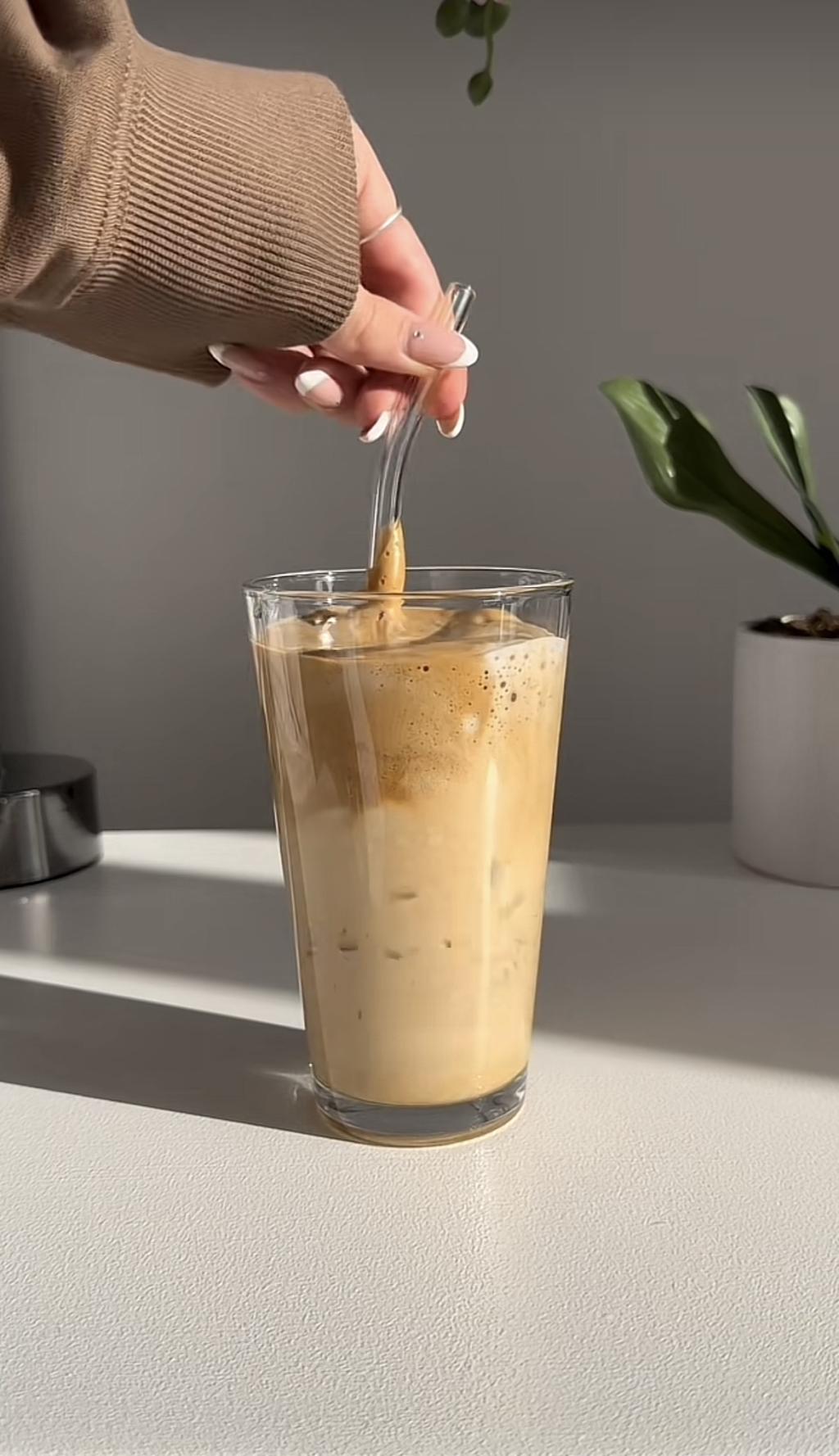 بعد ماتتكون الرغوه ضيفي ثلج وبعدها حليب