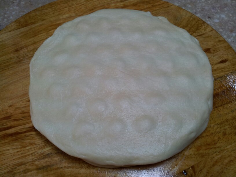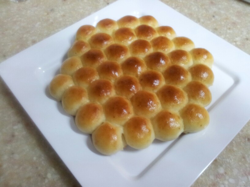 واحد ونصف كاس مويه .. 3 ملعقه صغيره خميره .. نصف كاس زيت .. فنجان سكر .. ملح .. فنجانين حليب بودره .. دقيق تقريبا اكثر من ثلاث كاسات .. و ملعقه كبيره بكنج بودر .. تعجن ثم تترك تتخمر