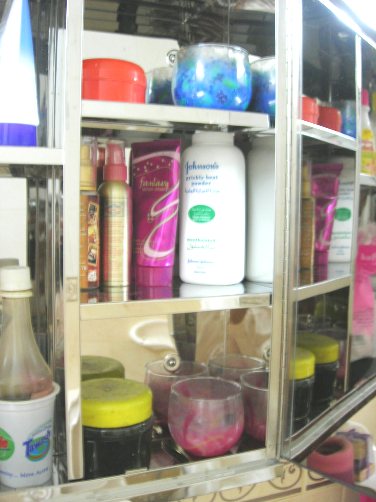 وهذا منظرة الحمام ... طبعا صورة جزء منها لانها كلها مرايا ... وهي مثل الخزانة حطيت داخلها اشياء العناية بالجسم ...