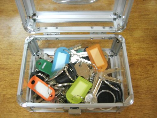 وحطيت صندوق فيه نسخ من مفاتيح البيت كل لون يدل على غرفة معينة عشان اعرف وما اضيع بزحمة المفاتيح ، وصندوق ثاني لأشرطتي ..