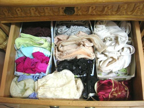 وقسمت ملابسي الداخلية داخل كرتون غطاته شفافة عشان اشوف شو داخلة