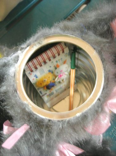 هنا عيالي قاموا بقص راس الارنب المسكين فيبت علبة حليب وحطيتها بداخلة بعد ما فرغته من الداخل واستخدمته اختي عشان تحط في اغراضها السرية ...