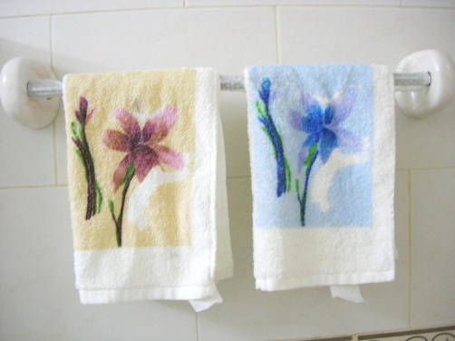 هذي هنا مرتبة فوطتين خاصة ل\بي ولزوجي للوجه .. اما باقي الفوط فشريت علاقة حديد من ست معاليق نسيت اصورها وركبتها ورى الباب عشان تكفي فوطي انا وزوجي وعيالي ..