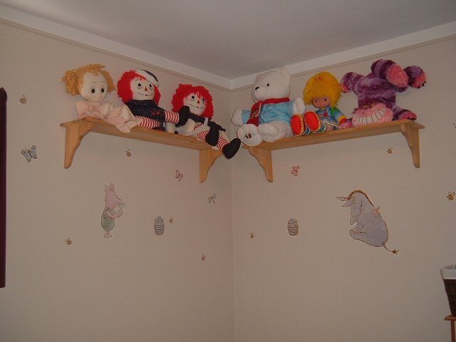 وناوية ان شاء الله اشتري رفوف احطها اما فوق اسرتهم او على كورنر في الغرفة ارتب فيها قصصهم وممكن اطار لصورهم او ألعابهم