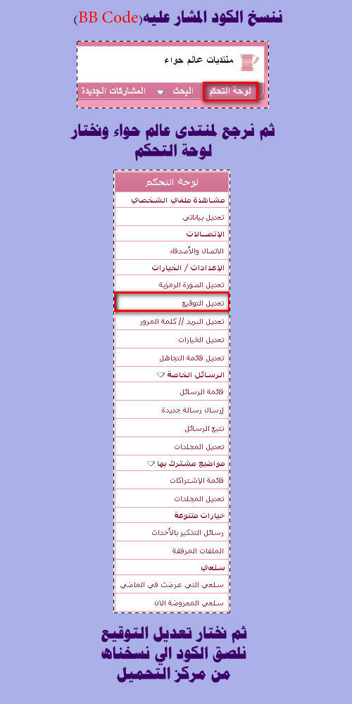 توقيعك يجب أن لا يكون أطول من 300 حرف يتضمن ترميز كود BB code