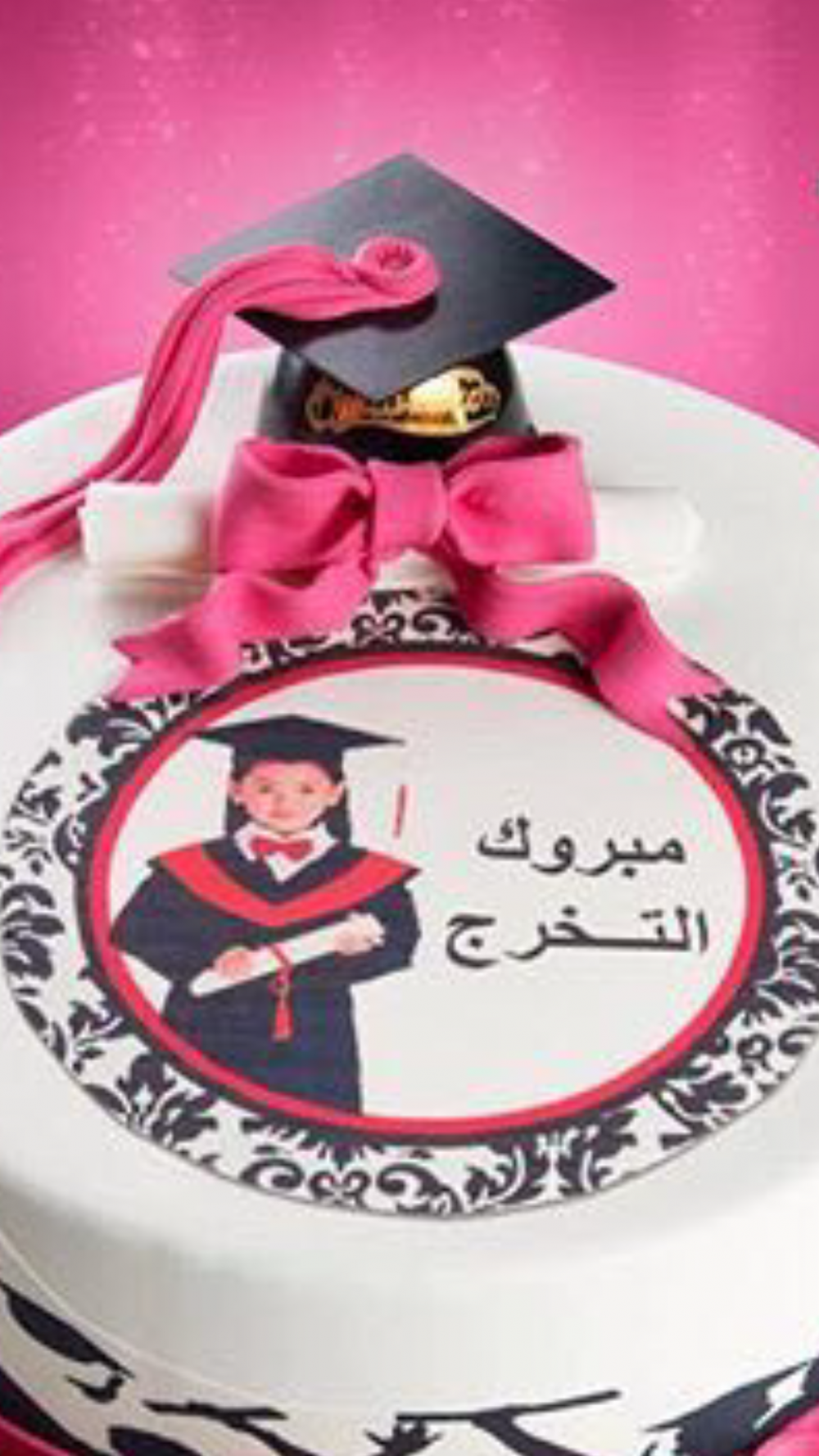 مكتوب عليها مبروك التخرج عبدالله من الماجستير