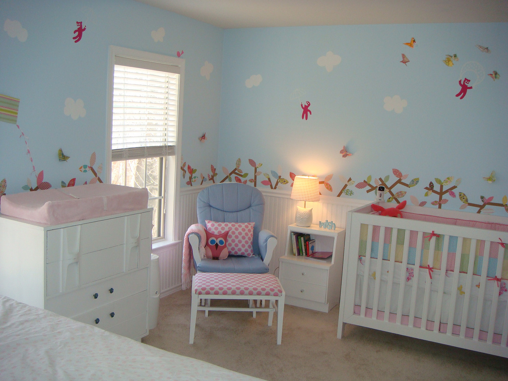 فيه صورة غرفة الطفال كان جبسها مدرج بعدين التلوين ماشي مه الدرجه الاولى للجبس ونازل على الجدار وبعدين الدرجه الثانيه من الجبس لون ثاني ومكملينه التلوين بالجدار وكمان الثالث