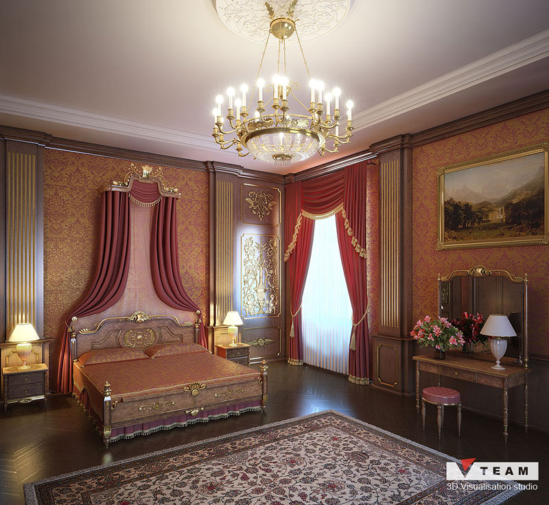 هذا موديل ستائر فخم وكلاسيك وجميل في غرفة النوم الكلاسيكية ولكن بمراعات تنسيق الألوان مع الجدران والمفارش