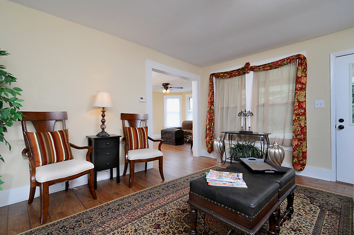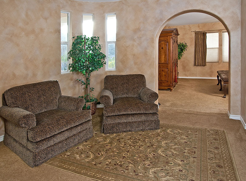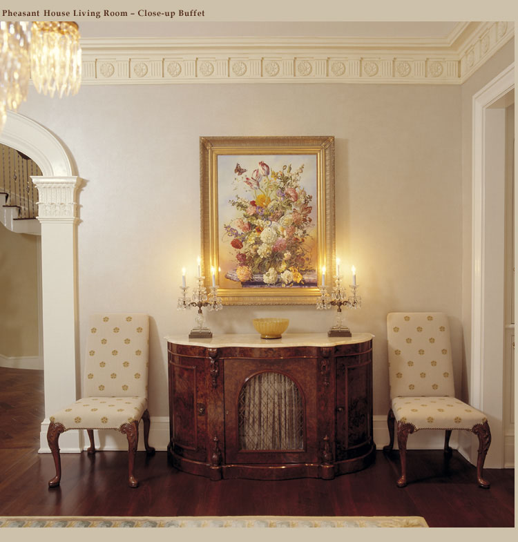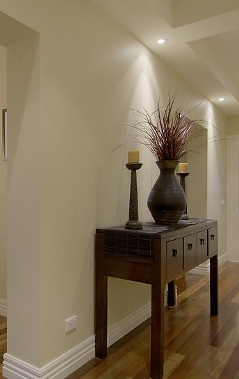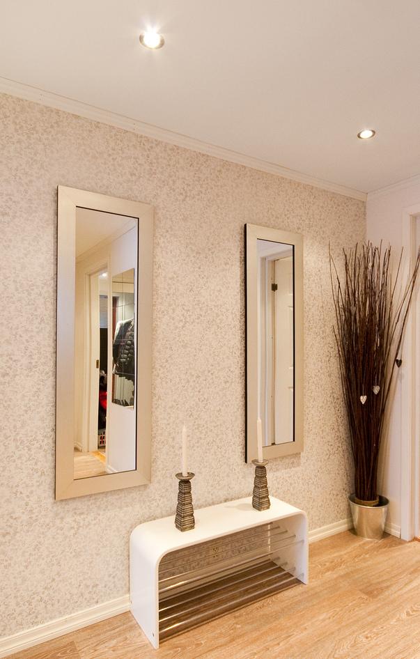 أو طاولة قنصل وفوقها لوحة أو مرآة حوليها كراسي أو شمعدانات جدران أو تضعي بنش