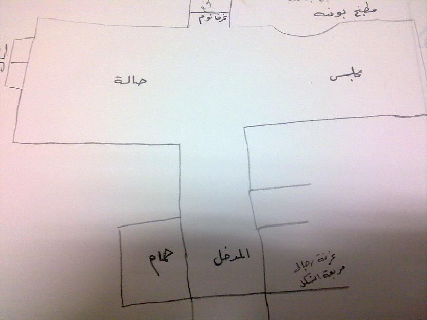 بنات بيتي جديد هو شقة وهذا شكل تقريبي للبيت انا ابيكم تساعدوني بديكور حلو لغرفة المجلس والمدخل والصالة الكبيرة بقسمها قسمين مجلس وكنب والمطبخ بوفيه هو مساحته مو بمرة كبيرة بس ساعدوووووووووووني بافكار للديكور مع الاكسسوارات والستاير والمناظر بليززززززززززز