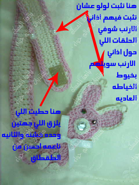 وعشان يثبت الارنب مكان اخيطه من رجوله وبطنه ومكان احد خرز او ازارير امسك فيهم اذانيه