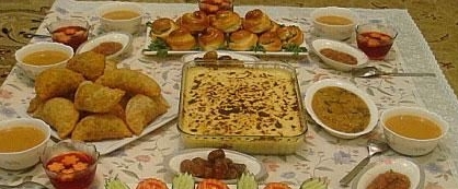 واللبن إضافة إلى الكبدة والتقاطيع وفي بعض الأحيان هناك الأرز والدجاج والأكلات الشعبية.
