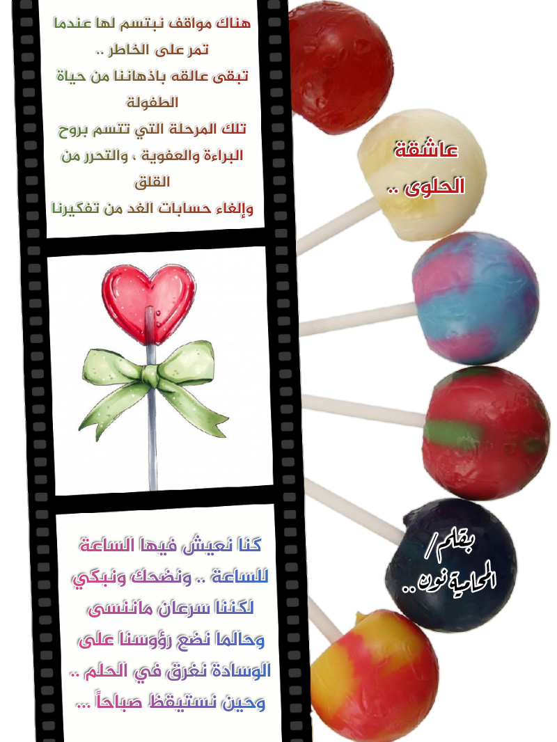 الموضوع جميل جداً وطريف ورائع أثبته لأجل أن يراه من يتواجد الآن في الواحة .. وكما ترون التواجد كان غنياً بوجود الرفاق .. وبدسامة المحتوى واسترساله.. وعدم وجود معوقات .. البركة في الباقين ليشاركوا ويقصوا علينا من ذكريات طفولتهم وتستحق نون منا ان نساهم .. والشكر لريحان إذ كانت قد عثرت على طرف الخيط فمددناه.. شكرا نون الحبيبة كأني اقرأ موضوعك لأول مرة فقد نسيت ! طريف جداً ألا مااجمل الطفولة !🍭🍭🍭😀الموضوع جميل جداً وطريف ورائع أثبته لأجل أن يراه من يتواجد الآن في الواحة .. وكما ترون التواجد...
