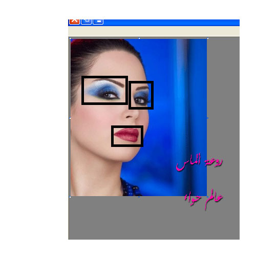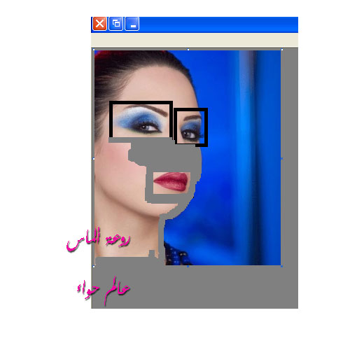 نسحب المربع بحيث يكون اطار على العين وبعده العين الثانيه ثم الشفايف