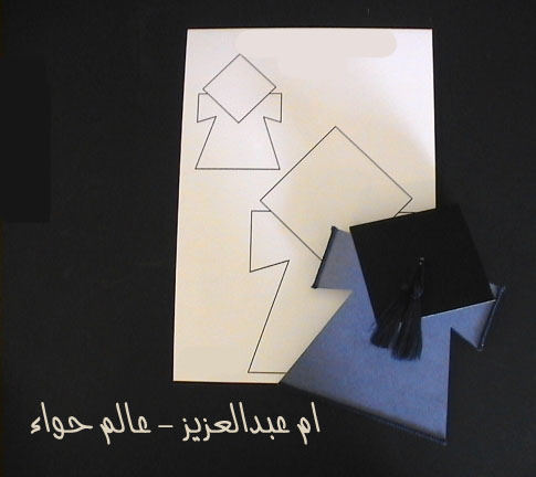 ثانيا نرسم ثوب التخرج والقبعه على ورق ملون اسود