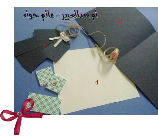 4 ورقه ايضابمقاس اصغر نصفسم من رقم 3 وبنفس لون الكرت