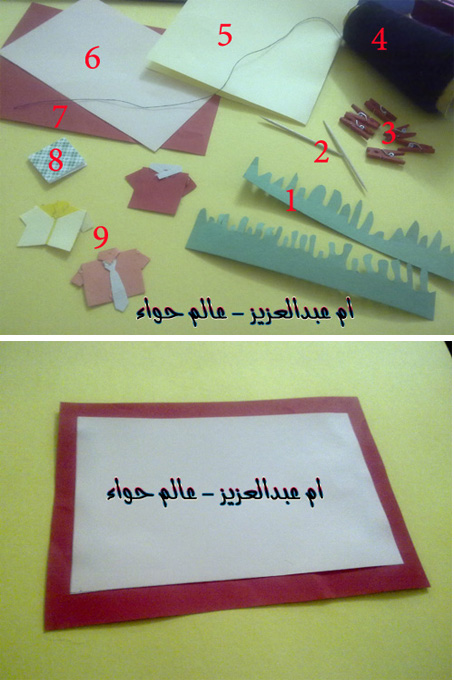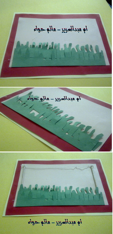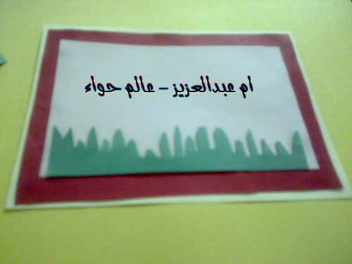 اذا صمغنا اوراق خلفيه الكرت نصمغ في نهاتيها العشب طبقتين