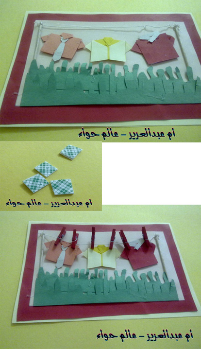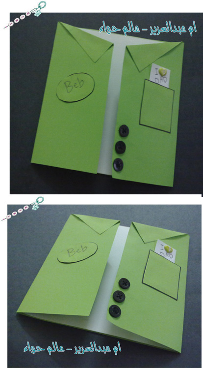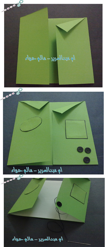 ونقص ورقه خضراء مربعه للجيب ونصمغها من ثلاث جهات فقط