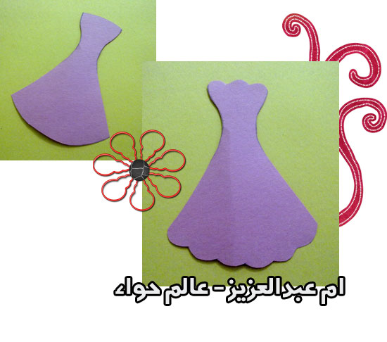 ونرسم عليها شكل فستان - مثل القوس تقريبا -
