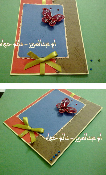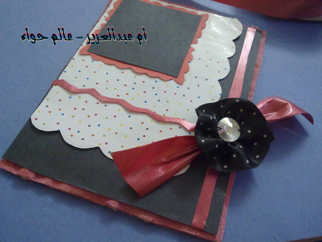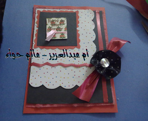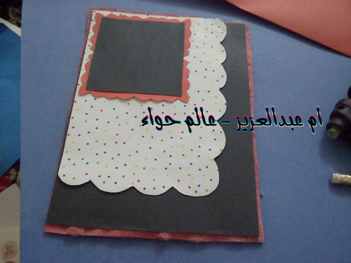 وهذي عندما انتهينا ولصقنا العمل على ورقه الكرت الحمراء بعد طيها