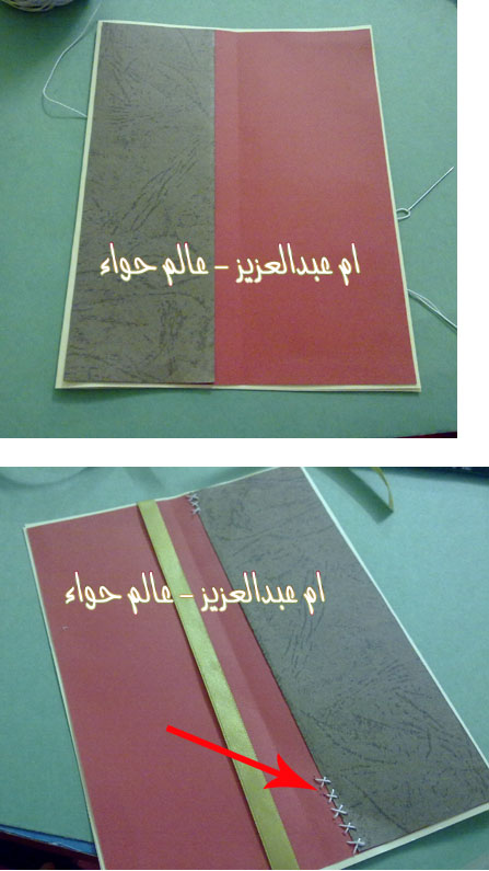 ثم نسكرها بطرف الورقه الزرقاء ( الخضراء)