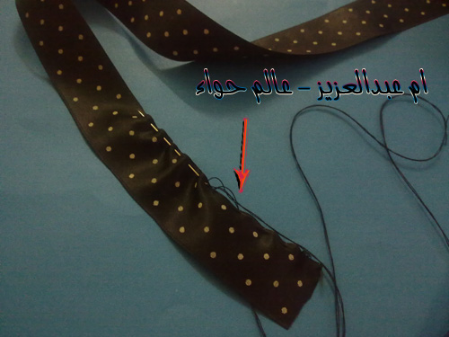 نجيب الشريطه ونخيطها من الطرف مثل الشكل الموضح في الصوره