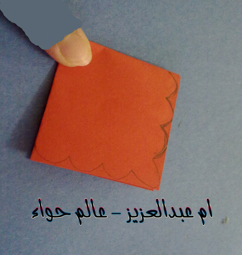 ونجيب الورقه الحمراء الصغيره ونطويها طيتين