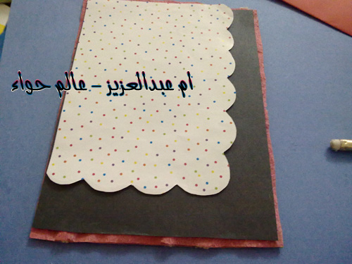 ثم نلصق عليها الورقه البيضاء المنقطه بعد قص اطرافها