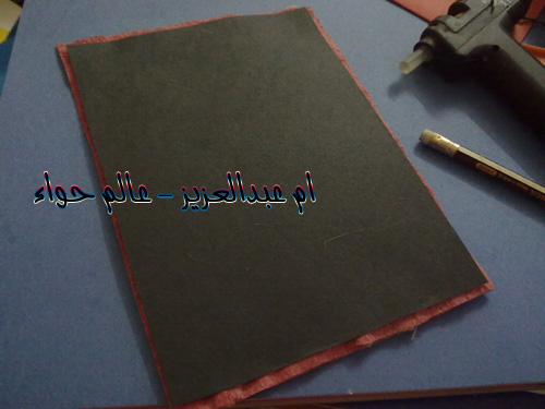 نجيب ورقه التغليف الحمراء ونلصق عليها الورقه السوداء