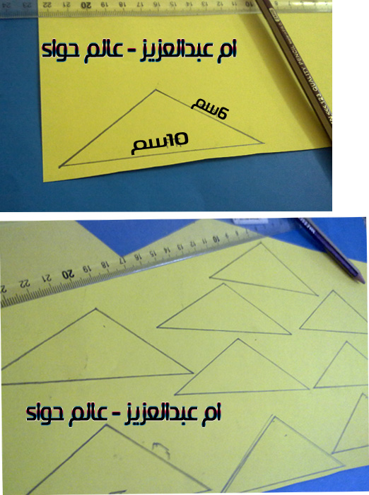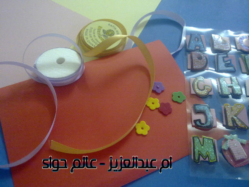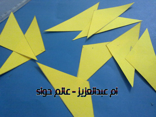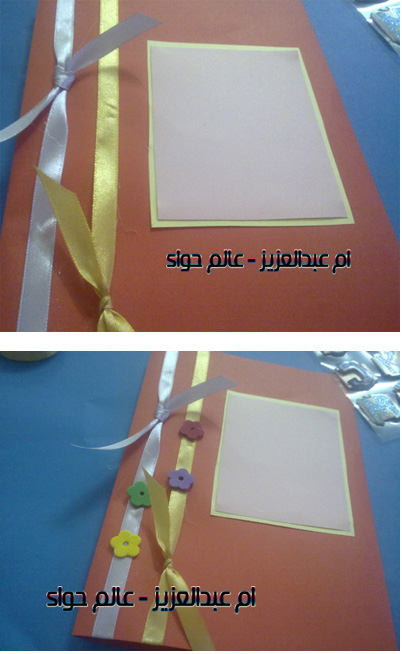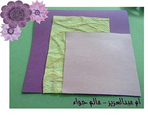ثم نضعها على ورقه ملونه ثانيه ونقصها