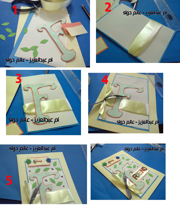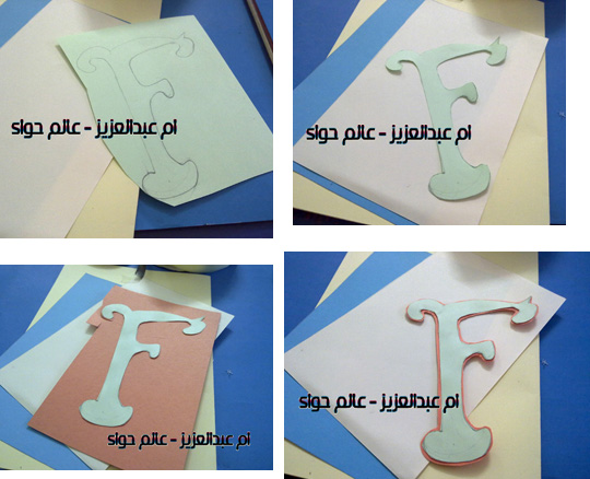 اولا نرسم حرف F على ورقه ملونه ونقصها