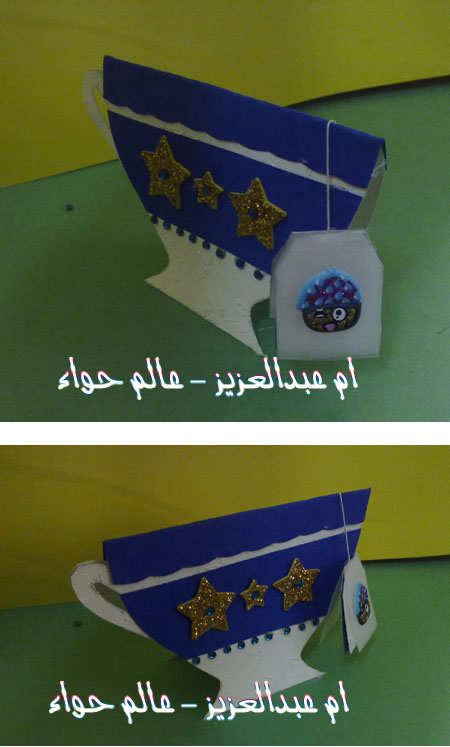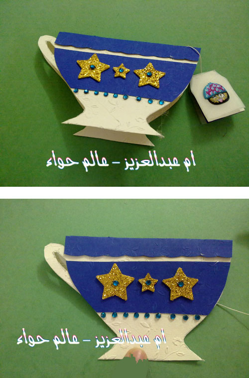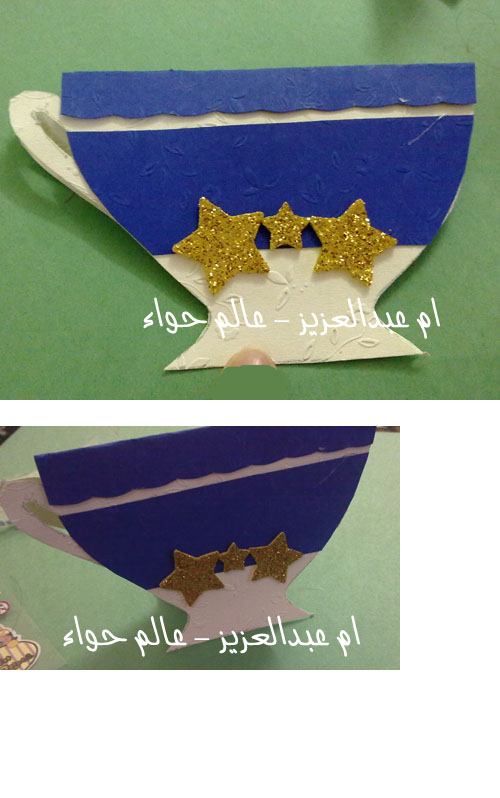 انا ماعجبتني النجوم اسفل الكوب فحطيتها وسط الكوب وزينته بكريستالات وحطيت كمان جو النجوم كريستالات