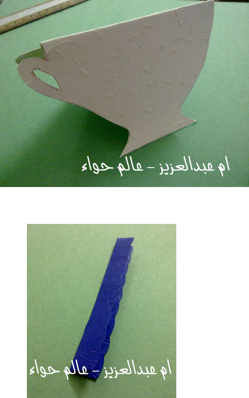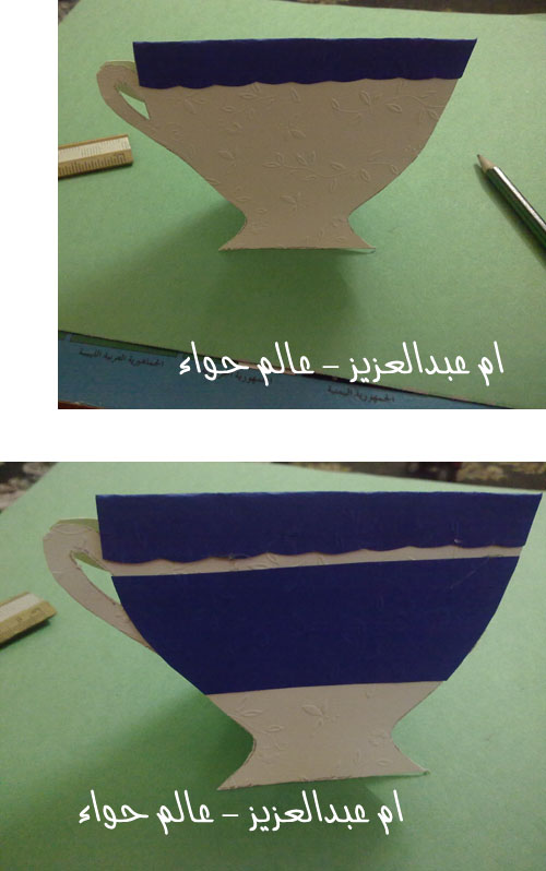 ونجيب ورقه ملونه زرقاء ونطويها ونقصها لنركبها فوق الكوب