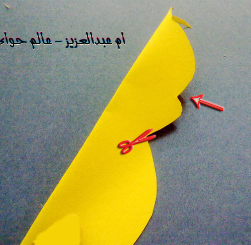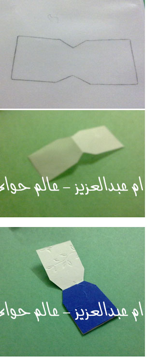 اولا نطوي ورقه الكرت ونلصق فوقه الورقه الغير متساويه الاطراف ( رقم 2 )