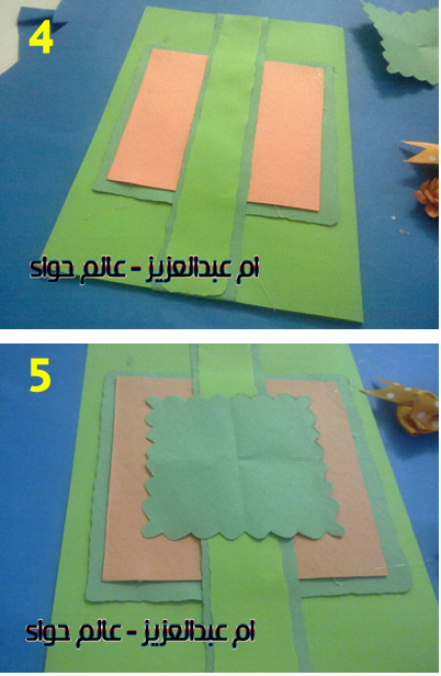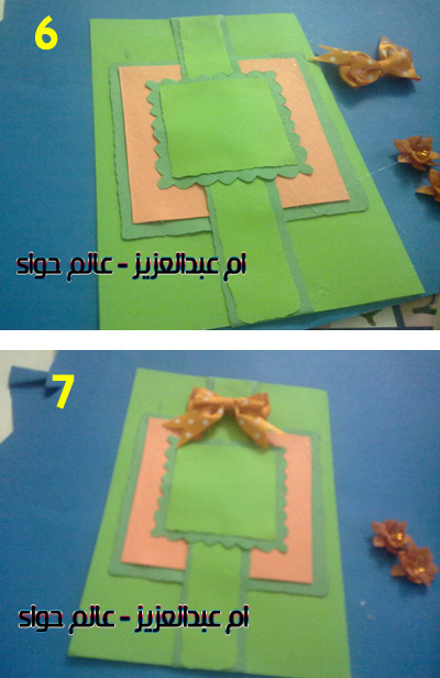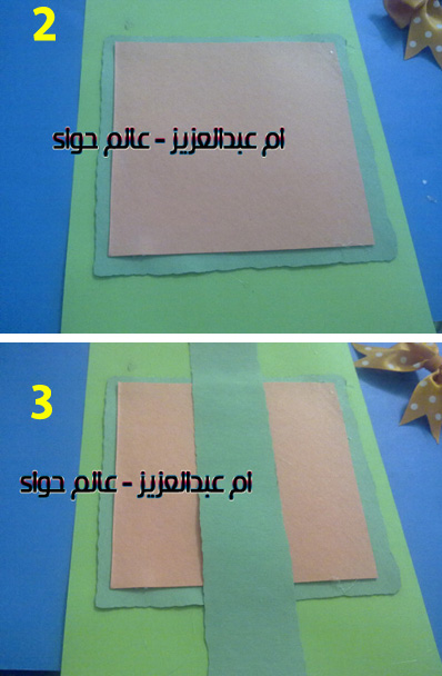 خامسا نلصق الورقه الخضراء المزينه الاطراف فوقهم