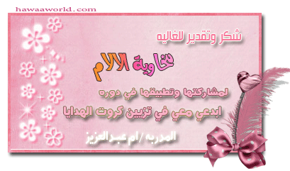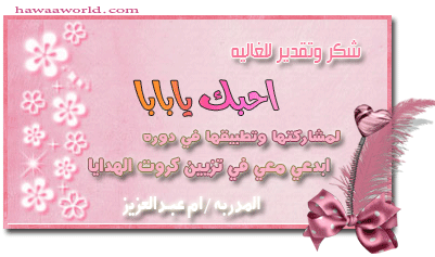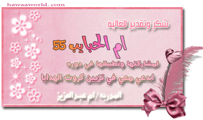 اول شي الف الف الف شكر لك يابله ام عبد العزيز على الدروس والتكريم والله يحققلك كل الى تتمنين عاجلا غير اجلا