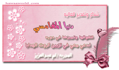 والله اني خجلانه منك ومشكوره اختي على الشهاده وانا افتخربتكريمك ليّ