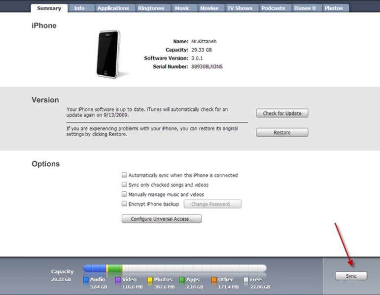ثم اضغط على Sync