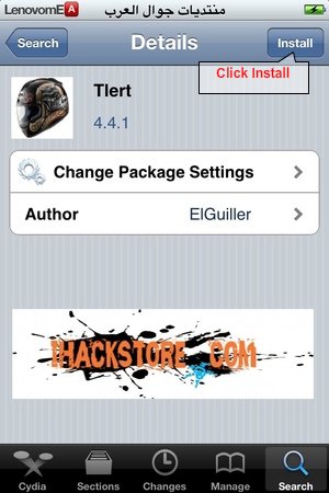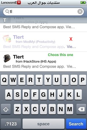 بعد اضافة السورس سابقة الدكر اعلاه ، روح لل Search في السيديا وابحث عن برنامج اسمه Tlert ى واعمله Install و Confirm .