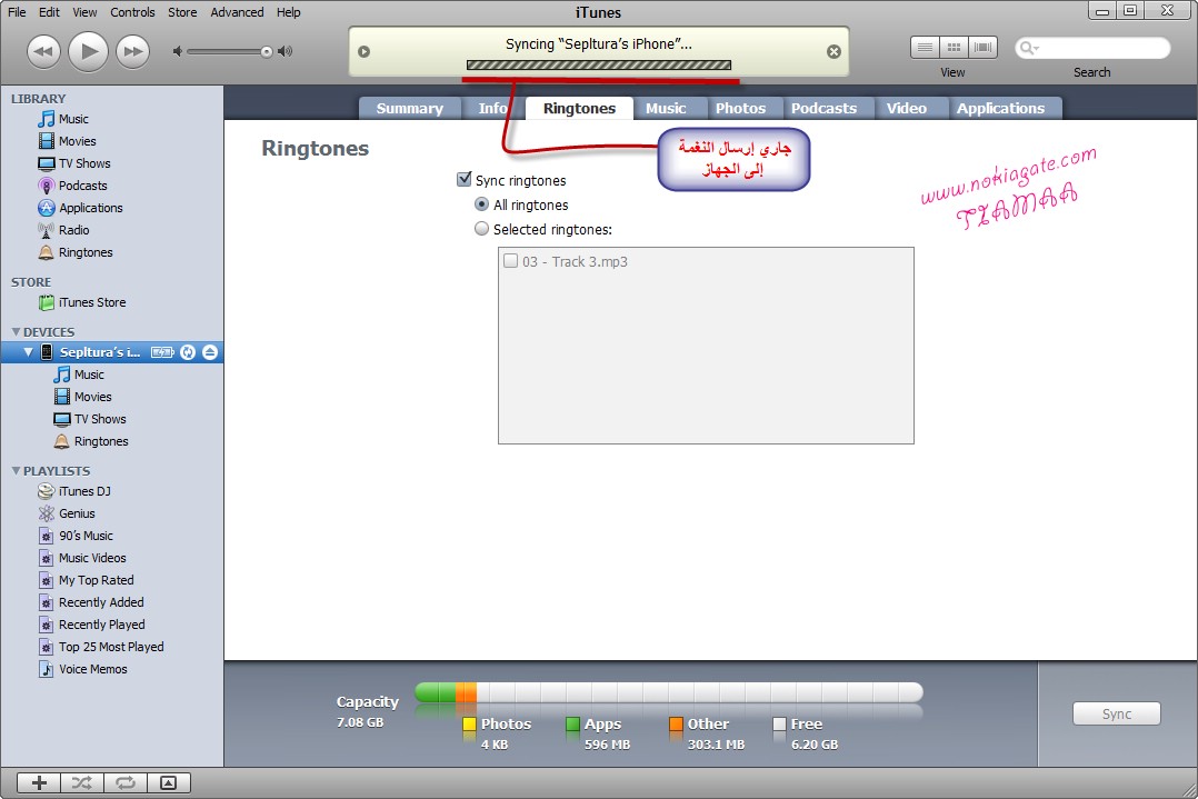 كما يقوم بأرسالها إلى الآيتونز لتصبح جاهزة للأرسال إلى الآيفون ..